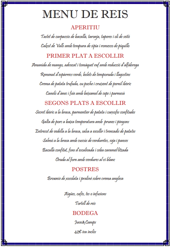 MENÚ CAP DE SETMANA